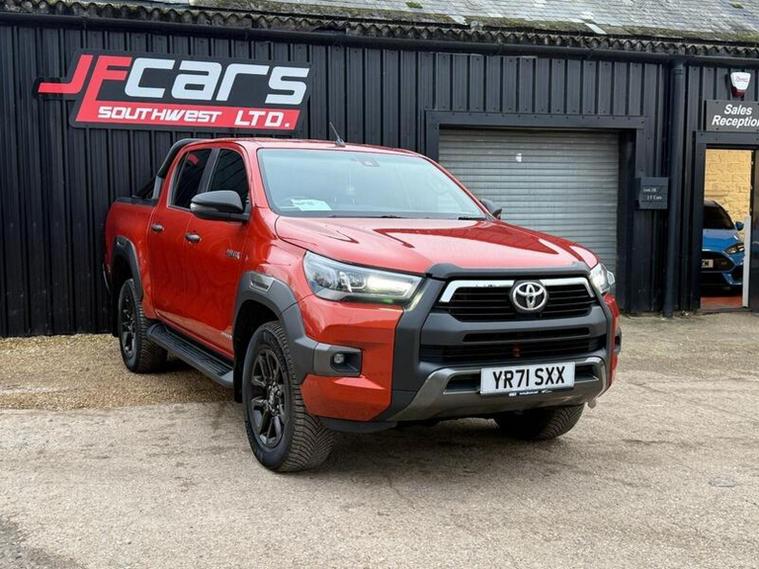 Toyota Hilux 2.8 D-4D Invincible X Auto 4WD Euro 6 (s/s) 4dr, YR71SXX, 2021 (71), 61, 227 miles, Diesel, Automatic, Orange, 1 owner, 26, 995+VAT, https://youtu.be/D_tSnXzexCw?si=lyFsDYXC2eCSd2kF, Just arrived this stunning twin cab pick up truck..... More pictures and details to follow once fully prepared and valeted. This 2021 Toyota Hilux Invincible X Auto 4WD is a superb example, having had only one owner since new. This robust 4x4 pickup truck boasts a powerful 2.8 litre D-4D diesel engine, delivering an impressive 201 bhp. Its Euro 6 compliant status ensures it meets current emissions standards, and with a substantial towing weight of 3500 kg, it is ready for any challenge. The Invincible X trim level comes equipped with a host of desirable features, including intelligent adaptive cruise control for relaxed journeys, automatic LED headlights for enhanced visibility, and smartphone integration with Apple CarPlay and Android Auto, keeping you connected on the go. Further enhancing your driving experience, this Hilux features a premium JBL sound system with nine speakers, providing exceptional audio quality. The four wheel drive system offers confidence and capability in diverse conditions. These carefully selected features and the vehicles single owner provenance demonstrate a higher standard compared to other similar models, offering a well maintained and feature rich option for those seeking a dependable and capable pickup. For more information or to arrange a test drive please contact James on 01460362914 or 01460362914. 6 months warranty supplied as standard and 12 months AA recovered free of charge if required. For more information please contact James on 01460362914 or 01460362914 or via the WhatsApp link on the website. extended warrantys now available via RAC warrantys at addition cost. Customer announcement.......... Unfortunately due to recent activity outside of our control and Autotrader enforcing there own deposit scheme to reserve a car of 99 please be aware that we have not agreed to this nor to we stand by the 99 reservation within the Autotrader Deal Builder scheme. J F Cars own and sell our cars and not Autotrader they are just a advertising platform for us. We do however still accept holding deposits for a cars within our own network and if you would like to hold/reserve a car please talk to one of out team and we can discuss this with you.