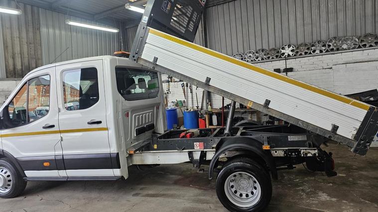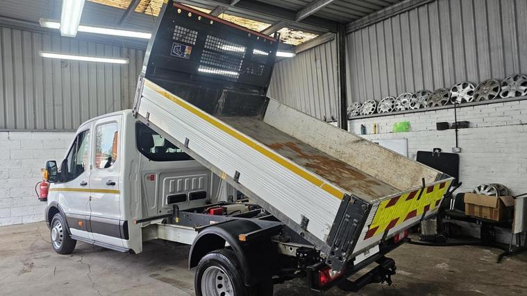 Ford Transit Leader Double Cab 350 L3 2.0L EcoBlue 130PS RWD 6 Speed(Manual) Tipper. 2021/71Reg, Mileage:56040 , Mot:27/09/2026, Remote Central Locking with 2 x keys, Electric front windows, Auto stop/start, Overhead & Under seat storage, 12v/usb sockets, Am/Fm/Dab Radio, Towbar with electrics, 1way tipper, Working beacon, Very tidy Crew Cab tipper inside and out, For viewings and to book a test rive Please get in touch, Only 16, 995+vat