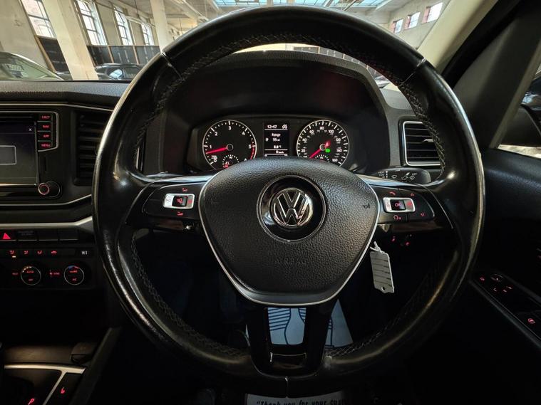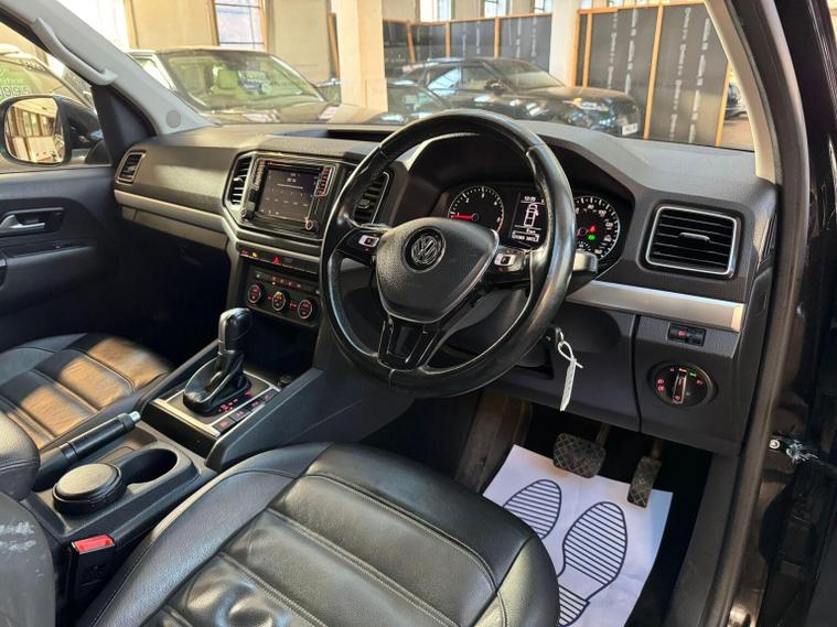 Boasting a full dealership service history, this 2017 Volkswagen Amarok Highline is ready for its next adventure. This robust 4x4 pickup is equipped with a powerful 3.0L V6 TDI BlueMotion Tech engine, delivering an impressive 221 bhp and a substantial towing weight of 3100 kg, making it ideal for demanding tasks. Its Euro 6 compliant engine ensures it meets current emissions standards, and with an MOT valid until October 2026, it offers peace of mind. The vehicle comes with a 6 month warranty for added reassurance. The Highline trim level enhances your driving experience with Bi-Xenon headlights featuring LED daytime running lights, front and rear parking sensors complemented by a rear view camera for effortless manoeuvring. Inside, youll find comfort features such as heated front seats, separately controllable for driver and passenger, and Climatronic air conditioning for a pleasant cabin environment in all conditions. This Amarok also benefits from a low insurance group, indicating it is more economical to insure than many similar vehicles, and its four wheel drive system provides excellent traction and capability.