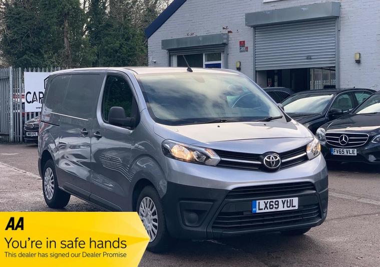 SAME DAY FINANCE AVAILABLE WITH 0 DEPOSIT, CALL OUR FINANCE TEAM FOR A QUOTATION TODAY, GREAT FINANCE PACKAGES, LOW RATE FINANCE, ONLY ONE FORMER OWNER, 12 MONTHS MOT AND NEW SERVICE OFFERED ON SALE, 12 MONTHS AA BREAKDOWN COVER, THREE MONTHS WARRANTY, DELIVERY AVAILABLE (opt), ALL MAJOR CREDIT & DEBIT CARDS PAYMENT ACCEPTED. OPEN 7 DAYS A WEEK, VISIT OUR WEBSITE FOR MORE CARS: dealer's website This 2019 Toyota ProAce 2.0D Icon Medium Panel Van MWB Euro 6 (s/s) 6dr presents a compelling proposition with its remarkably low mileage of just 65, 123 miles for its age. Powered by an efficient 2.0 litre diesel engine, this Euro 6 compliant van is designed for practicality and reliability. It comes equipped with desirable features such as automatic headlights, air conditioning for a comfortable driving experience, and rear parking sensors to aid manoeuvrability. The inclusion of a Bluetooth hands free system ensures you can stay connected safely while on the move. The ProAce Icon derivative stands out with its smart cargo solutions and user friendly technology. Its low CO2 emissions highlight its consideration for environmental impact, making it a sensible choice. The combination of its Euro 6 rating, low mileage, and practical features like the parking assistance and air conditioning demonstrate its value and suitability for a variety of commercial needs, offering a well equipped and economical option in its class.