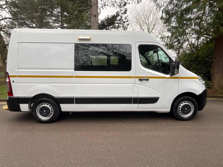 Here we have this Lovely Low Mileaged Vauxhall Movano 2.3 CDTi 3500 FWD L2H2 5 Seater Crew Cab Van in Arctic White, Complimented with Charcoal Black Cloth Trim. This Has Covered a genuine low 26, 000 miles, FSH with a detailed computer printout of every service, Tyre Replacement, Wiper Blades with dates times & Mileage etc. 1 Company Owned from new (network Rail). 2 Keys. Looks & drives Superb, Excellent original condition throughout. Fantastic Specification including Cruise control, 6 speed Manual, Radio Cd Stereo, Dab Stereo, Handsfree, A/C, Trip Computer, Electric Windows, Remote Central Locking Alarm Immobiliser, Rear Crew Cab making these 5 Seaters. Foldaway Rear Tables, Rear Microwave, 24V/240V Plug Socket. Hot Boiling Water Decanter, Espache/Webasto Diesel Heater, fresh Water With Sink. Internal Racking & Drawers, Rear Parking Sensors, Rear Steps, Rear View Camera, Twin Leisure Batteries, Split Charge System. Welfare Computer System, Side windows with built in Sliding Windows. Long MOTs. 345 Per Year Road Tax. These are an ideal Ideal Family work van, or would be ideal contenders to convert into camper vans, etc. These vans are in Fantastic Condition. Viewing & test drive is highly recommended to appreciate the condition. For the fastest response or more information, please contact us on Whatsapp: 01616232128. Apply for finance: https:/ dealer's website - Reserve for 99, UK Wide delivery is available, We offer a range of services including finance options, accepting debit and credit cards, bank transfers, MOTs, part exchanges, delivery and collection, finance settlements, and Hpi reports. There are several reasons to buy from us, including being an AA trusted dealer, having 5-star Auto Trader reviews, offering click and collect, welcoming AA and RAC inspections, considering good or poor credit history for finance options, providing same day drive away, and offering 12 months of free AA breakdown cover. Our location is at Cheadle Car Sales Ltd, Unit 8, Brookfield Road, Stockport, SK8 2PN. To apply for finance