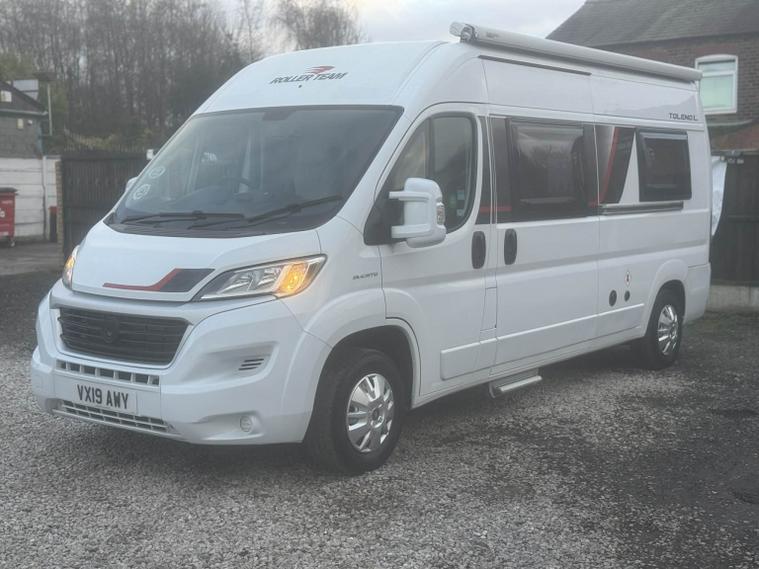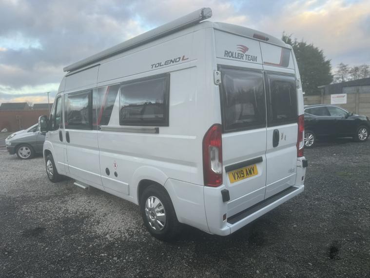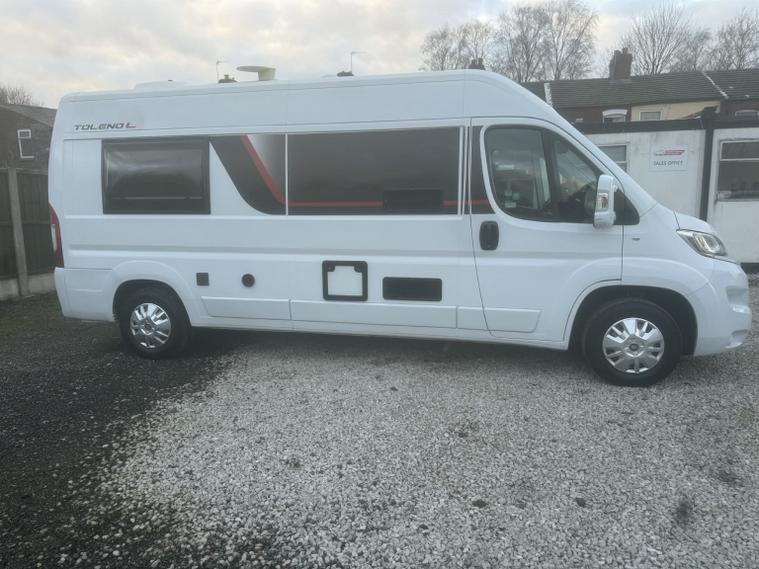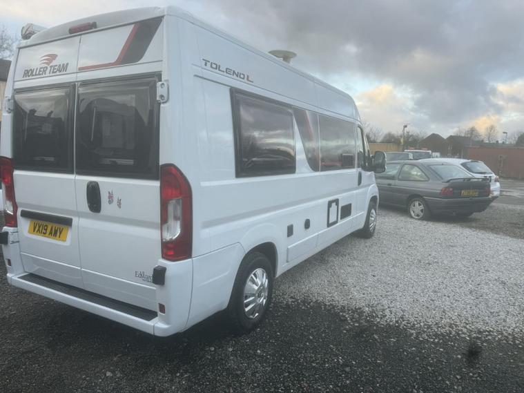 STUNNING FIAT DUCATO 2.0 ROLLER TEAM TOLENO L CAMPERVAN PERFECT FOR A SOLO TRAVELLERS, COUPLES OR SMALL FAMILY THAT WANT DIVERSE LAYOUT WITH EASY MANOEUVRABILITY. EXCELLENT VALUE WITH A FULL 12 MONTHS MOT PROVIDED ON PURCHASE, ENSURING PEACE OF MIND FULL SERVICE HISTORY, NICE LO3 MILEAGE AND DRIVES GREAT! THIS MOTORHOME HAS ONLY COVERED A GENUINE 12, 000 MILES FROM NEW AND HAS BEEN WELL KEPT. THE CABIN BENEFITS FROM AIR CONDITIONING, REVERSING CAMERA, BLUETOOTH RADIO AND CRUISE CONTROL ALL MAKING IT EASY AND COMFORTABLE TO DRIVE. AN ABSOLUTE CREDIT TO ITS FORMER LADY KEEPER, REST ASSURED YOU WILL STRUGGLE TO FIND A NICER EXAMPLE!!, To come with 12 months MOT and a full service at point of sale and 145-point PDI. For added piece of mind included with the car is 6 months Comprehensive Warranty and 12 months AA Roadside Assistance! Absolutely spot on with no mechanical or electrical faults very tight and smooth everything works as it should. Well, cared for example! , Amazing spec featuring; Aerial, Awning/Canopy, Bluetooth, Cab Air -Con, Cruise Control, Central Locking, Centre Dinette, Fridge, Grill, Gas & Electric heating & hot water, Gas low, Hab Door Nearside, Radio, Rear Lounge, Reversing Camera, Solar Panel, Swivel Seats x 2, Toilet, Washroom. The layout comprises of an end lounge with two bench seats this is perfect for when you want to relax, dine or entertain; they also make up into a large 2 berth in a matter of seconds. Another benefit is you have the ability to add or remove an additional two berth above this area creating a bunk effect. Moving forward you have a modern, light washroom with toilet, shower and modern sink unit. Opposite you have a well equipped kitchen which comprises of 3 way fridge/freezer, gas hobs, grill/oven combi, sink and worktop space. Towards the front of the van you have a centre dinette which can accommodate 4 people when the driver and passenger swivel chairs are turned; a perfect second area to relax in. Moving outside you have a wind out canopy to create a large, covered outside space to relax in. There is also a solar panel to help keep power levels topped up!, GIVE US A CALL TO ARRANGE A FRIENDLY HASSLE-FREE TEST DRIVE AND MEET OUR TEAM WHO WILL HELP YOU EVERY STEP OF THE WAY WITH YOUR NEXT CAR PURCHASE. WE ARE A FAMILY RUN COMPANY AND PRIDE OURSELVES ON OUR CUSTOMER SERVICE. WE CANT GUARANTEE ANY VEHICLE BUT WHAT WE CAN GUARANTEE IS OUR AFTER SALES SERVICE THAT IS SECOND TO NONE SO GIVE US A TRY - CUSTOMER SATISFACTION IS OUR PRIORITY ALWAYS. WE BELIEVE WE GO ABOVE AND BEYOND FROM YOUR INITIAL ENQUIRY, TO VIDEO OR MEETING UP, TO KEEPING YOU UPDATED AND TO THE DELIVERY/COLLECTION STAGE, BUT IT DOES NOT STOP THERE AS WE ARE WITH YOU THROUGHOUT YOUR WARRANTY PERIOD AND BEYOND AND WANT YOU TO TELL FRIENDS AND FAMILY .WE HAVE SO SO MANY PEOPLE REFERRING OR RETURNING WHICH PUTS A BIG SMILE ON