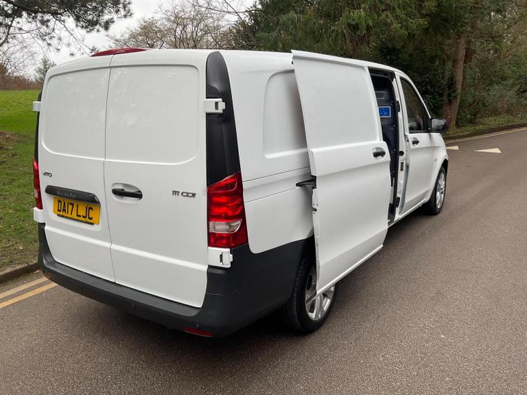 Here we have this lovely Mercedes-Benz Vito 1.6 111 CDI FWD Euro 6 Van in Brilliant White, Complimented with Black & Grey Trim. 1 Previous Owner, Looks & drives superb, Excellent original condition throughout. Fantastic Fuel economy averaging between 46.2-64.8 MPG. Fantastic Specification including: Power Steering, electric windows, Electric Adjustable Mirrors, Radio Stereo, usb input, aux input, bluetooth Hands Free, Trip Computer, Remote Central Locking, Cruise Control, Twin Side Sliding Doors, Ply Lined, Bulkhead, 3 Seater, Alloys, Rear Parking Sensors.etc MOT Expires 5th January 2027. 345 Per Year Road Tax, This Van has only had light use, as its uber clean throughout. viewing & test drive highly recommended to appreciate this lovely Euro 6 Ulez compliant Van. No Vat. For the fastest response or more information, please contact on Whatsapp at 01616232128. UK Wide delivery is available, with free delivery within 60 miles. Additional pictures can be found on our website at dealer's website We offer a range of services including finance options, accepting debit and credit cards, bank transfers, MOTs, part exchanges, delivery and collection, finance settlements, and Hpi reports. There are several reasons to buy from us, including being an AA trusted dealer, having 5-star Auto Trader reviews, offering click and collect, welcoming AA and RAC inspections, considering good or poor credit history for finance options, providing same day drive away, and offering 12 months of free AA breakdown cover. Our location is at Cheadle Car Sales Ltd, Unit 8, Brookfield Road, Stockport, SK8 2PN. To apply for finance, please visit our website at dealer's website