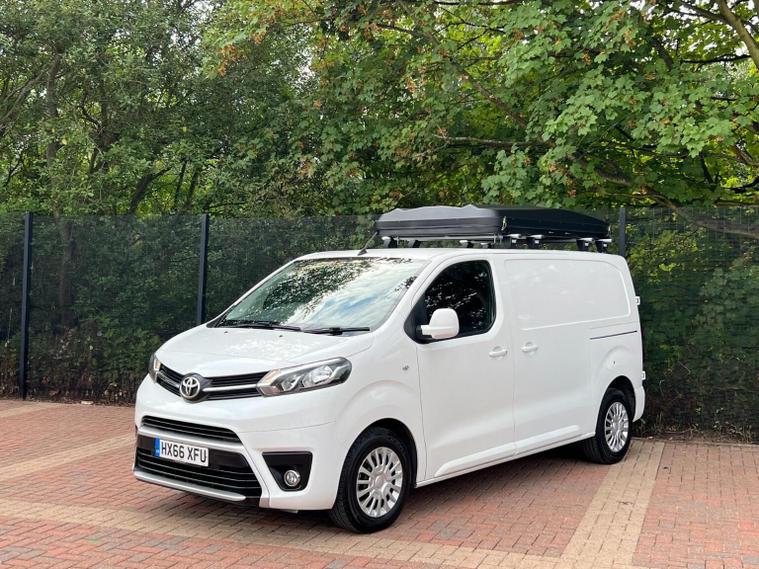 The 2016 Toyota ProAce 2.0D Comfort Medium Panel Van MWB Euro 6 is a practical and efficient commercial vehicle, designed to meet the demands of your business. As a D Comfort variant with a Comfort trim, this six-door panel van is powered by a robust 2.0L diesel engine and adheres to Euro 6 emission standards. It also features Bluetooth connectivity, ensuring you stay connected on the move, and comes equipped with air conditioning for a comfortable driving experience, no matter the weather. With a fuel economy of 54 mpg, this ProAce helps keep your running costs down, making it an economical choice for your business needs. The impressive 6100 litres of cargo volume means that you can transport large loads with ease. Low CO2 emissions mean that this vehicle is better for the environment compared to similar vehicles.
